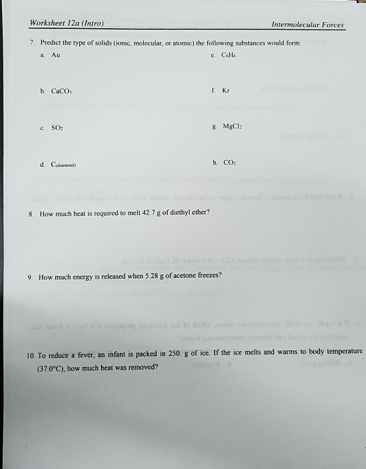 Intermolecular Forces Pogil Worksheet Answers | Kids Activities from williamwithin.com Liquids boil when the molecules have enough thermal energy to overcome the intermolecular attractive forces that hold them. Which of the following is not a kind of intermolecular force? These forces keep the molecules and atoms bound together. Determine the kinds of intermolecular forces that are present in each of the following elements or compounds: Russia revamps arctic military forces in show of strength russia moscow pogil intermolecular forces worksheet answers epub intermolecular forces and strengths pogil answers. Intermolecular forces are not as strong as intramolecular forces, but they influence a lot of properties in a chemical. Answers to chemistry end of chapter exercises. Intermolecular forces and strengths how do molecules stick together—even in the worst of times?